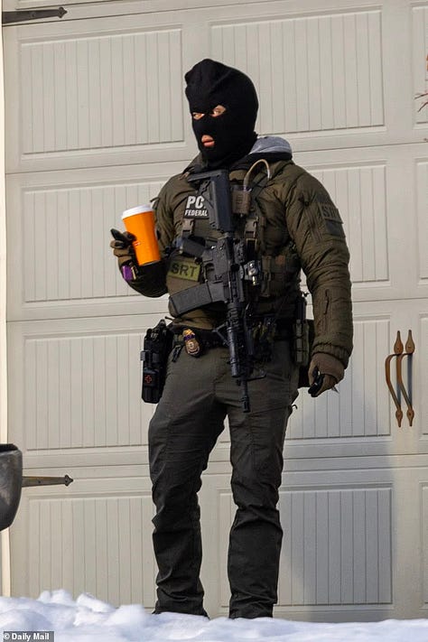 And the cover-up is already underway. On Friday, ICE sent a masked Special Response Team—their own tactical unit, identifiable by SRT patches on their vests—to Ross’s empty home.¹³ Agents in balaclavas removed five crates of belongings and a computer tower.