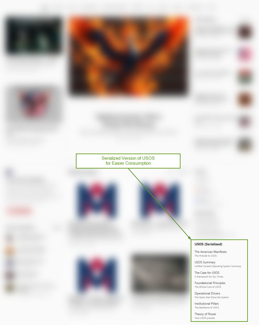 Readers are encouraged to use Substack’s frontpage navigation to find detailed posts on each USOS element as they are published, making it easy to explore and understand each component in depth.