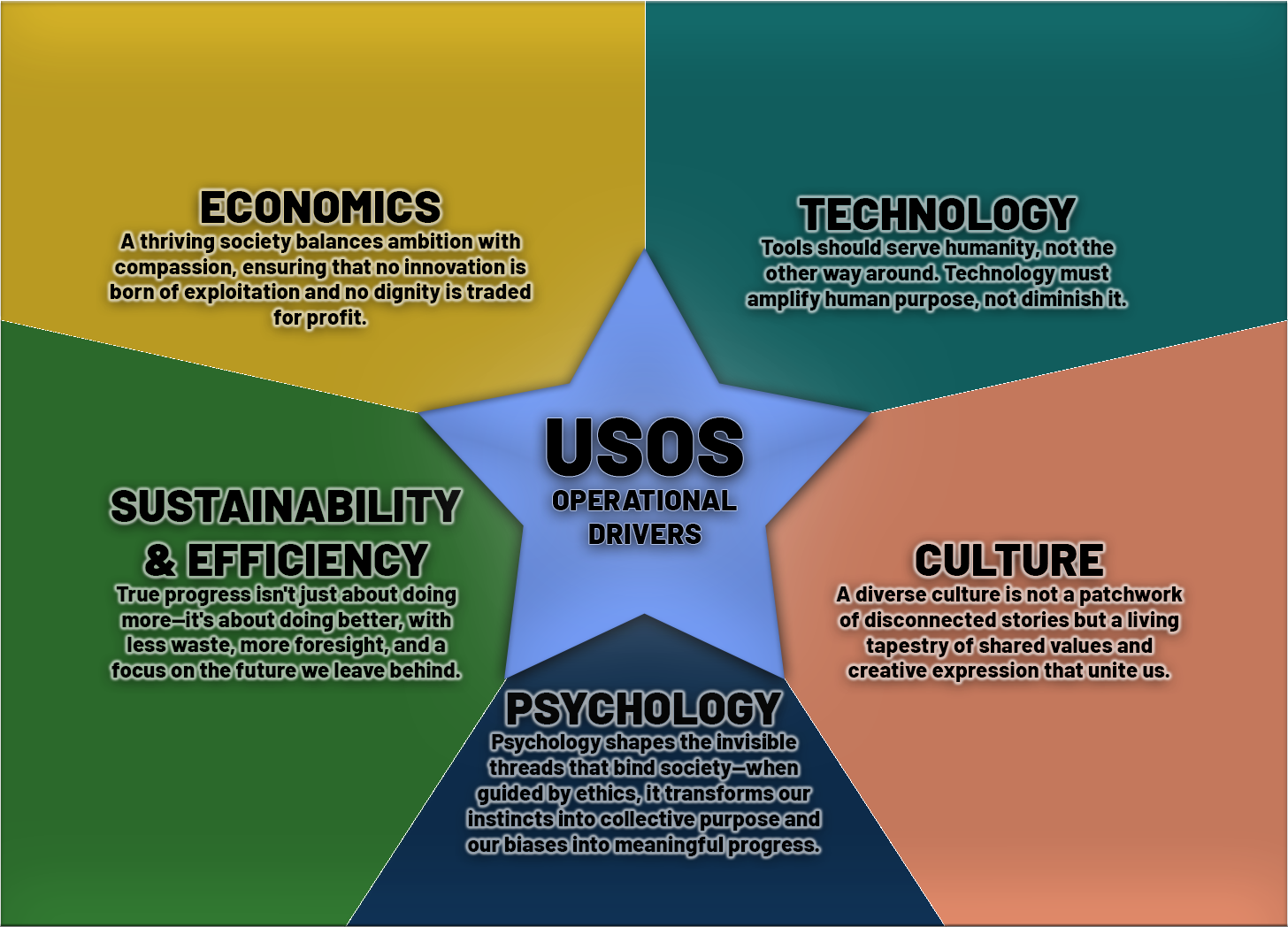 Together, these drivers transform USOS into a dynamic system that adapts to humanity’s evolving needs while remaining rooted in shared values. They are not just tools of governance—they are instruments of progress, unity, and collective well-being.